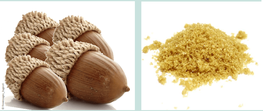 Ingredientes: Bolotas Açúcar Água Preparação: Coloque as bolotas num recipiente com água para as lavar. As que boiarem não estão